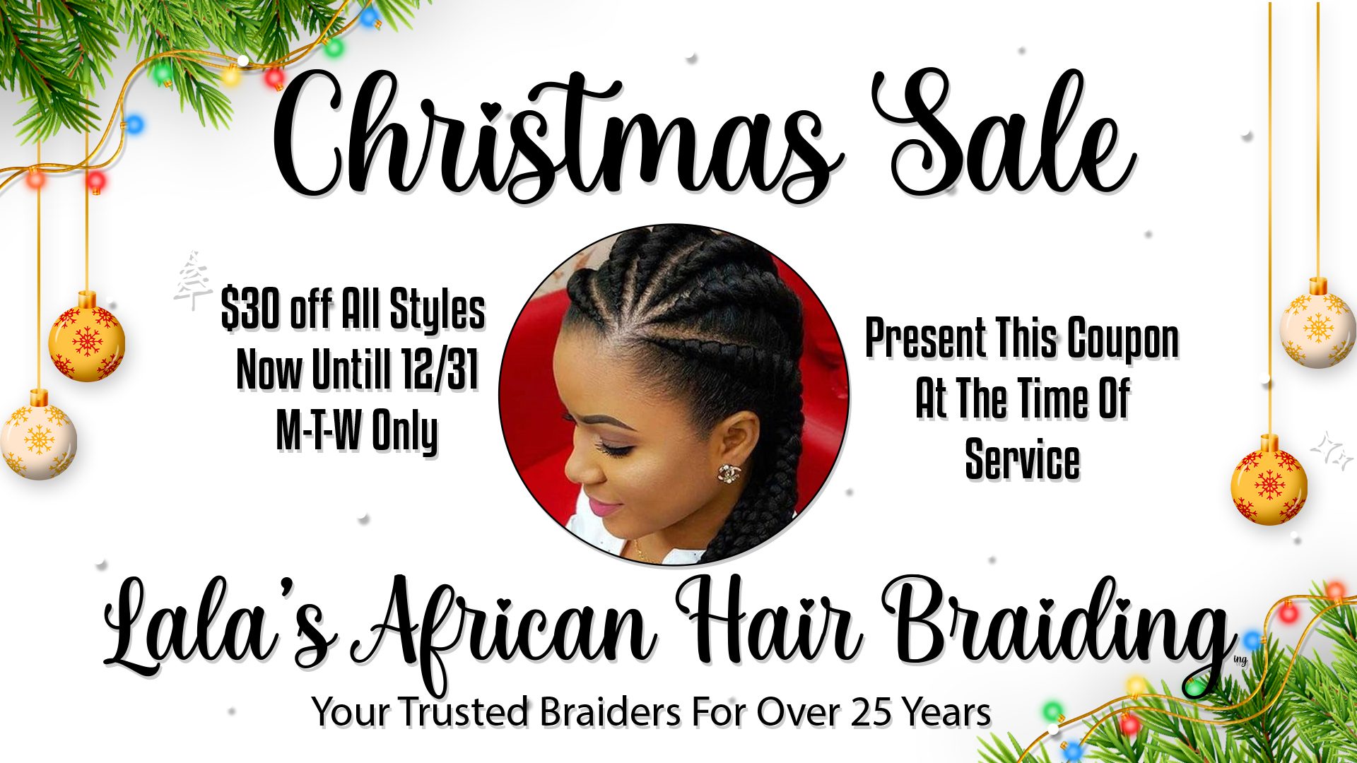 Choose Lalas Hair Braiding Salon for all your hair braiding needs. Our expert braiders have years of experience and expertise in a wide variety of African braiding styles. We take pride in providing personalized service, taking the time to listen to your specific needs and ensuring your satisfaction. With our wide range of styles, including intricate cornrows, elegant box braids, and trendy twists, we can bring your vision to life. Attention to detail is our priority, and we maintain a clean and welcoming environment. Our affordable pricing ensures that everyone can enjoy professional African hair braiding. At Lalas Hair Braiding Salon, we appreciate and celebrate the cultural heritage behind African hair braiding, honoring the traditions and significance of each style. Experience the magic of African hair braiding with us and let us create a work of art that reflects your unique style and personality.